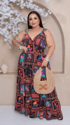 Macaquinho de Alças Estampado Viscolinho Plus Size