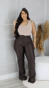 Calça Wide Leg Jeans Cargo Chocolate