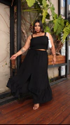 Cropped Tomara que Caia e Shorts Saia com Cinto.