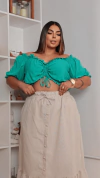 Blusa com recorte Ombro a Ombro com ajuste regulável, detalhes que permitem um caimento ajustado e confortável ao seu corpo. Com decote V e destaque para o franzido na parte central, tornando ela levemente acinturada, com caimento perfeito