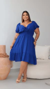 Vestido Mid Viscolinho Básico Liso Princesa - Azul Royal