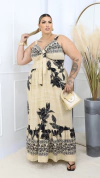 Vestido Longo Duna Estampado Flora Bali - Nude / Preto